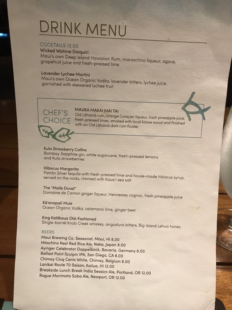 Mauka Makai Menu (Update 2025)